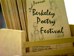 Berkeley Poetry Festival "SLAM" Hosted by Ekabhumi Ellik Ekabhumi Ellik Doug Furrow Kirk Lumpkin Lara Dale Michael Cirelli Lisa Martinovic Jonathan Gaffey Phillip T Nails Hosts: Ellik and Cuneo Cassandra Tesch Berkeley Poetry Festival "Featured Readers" Mary Mackey Richard "Dixi' Cohn Julia Vinograd Patricia D'Alessandro Gaya Jenkins Lee Williams Allen Cohn Adelle Foley Berkeley Poetry Festival "Open Mic" Hosted by Mark States & Randy FIngland Mark States Ray Skjelbred Xerxes Whitney Gene Sharea Debra Kattab Marianne Robinson Jack Melander Fred Jewel Randy Fingland Hosts: Cuneo and States Berkeley Poetry Festival "Sculpture Garden" Performances YaYa Porras Daniel Godston Felicia Mcgee Jonnny Heart Jesse Beagle Lawrence "Larry" Brooks Max Schwartz Nicole Rhoe